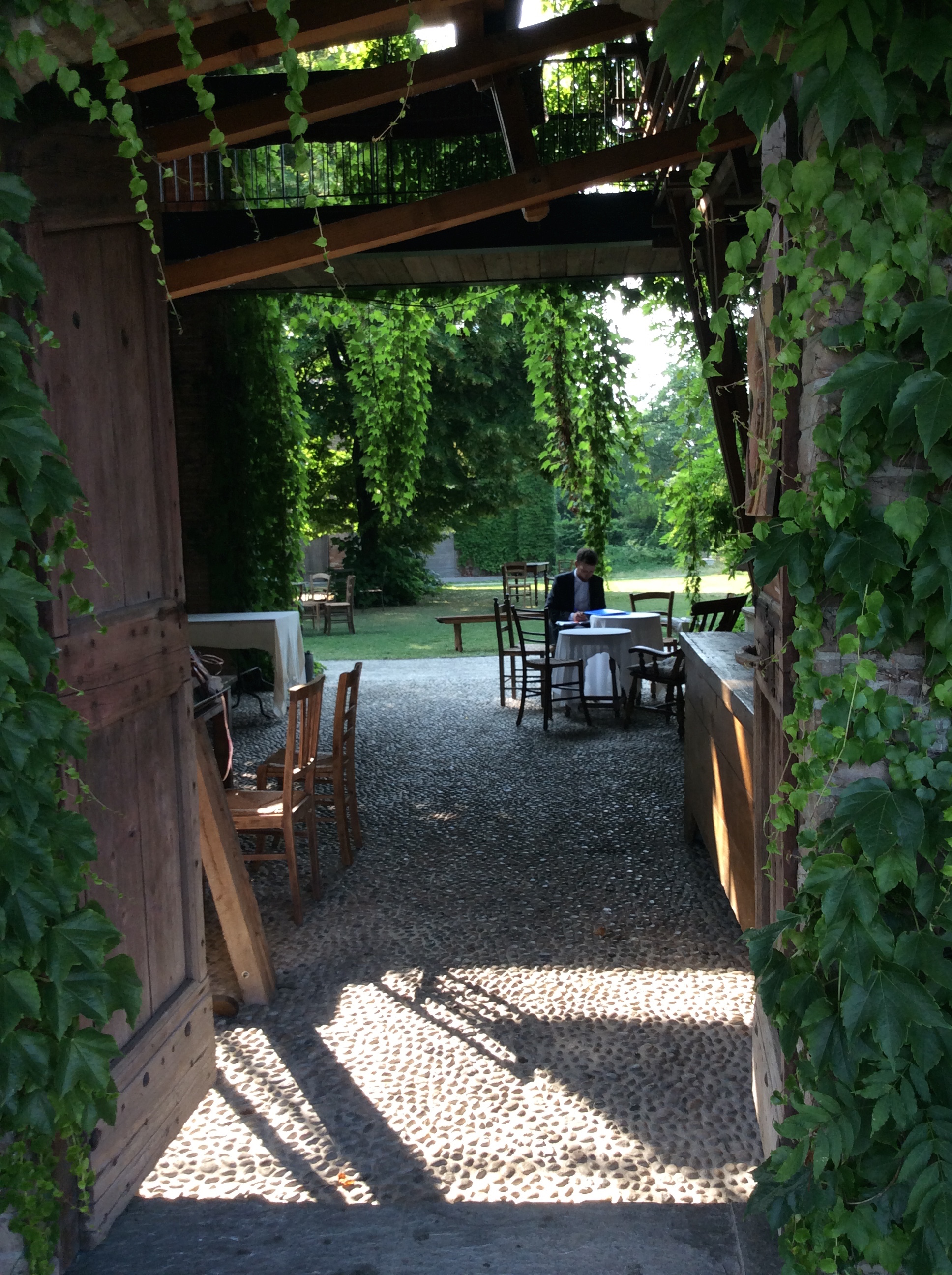 Varco la soglia della locanda e subito noto un ragazzo, molto ben vestito, quasi da matrimonio, seduto a un tavolo che scrive. Contribuisce a dipingere di fronte a me un quadro d’altri tempi. Per il momento siamo noi due e nessun altro; non lo interpreto come invitato, né tantomeno come “azienda agricola”. Forse un ospite della locanda, o un elegante maître, responsabile dell’accoglienza.