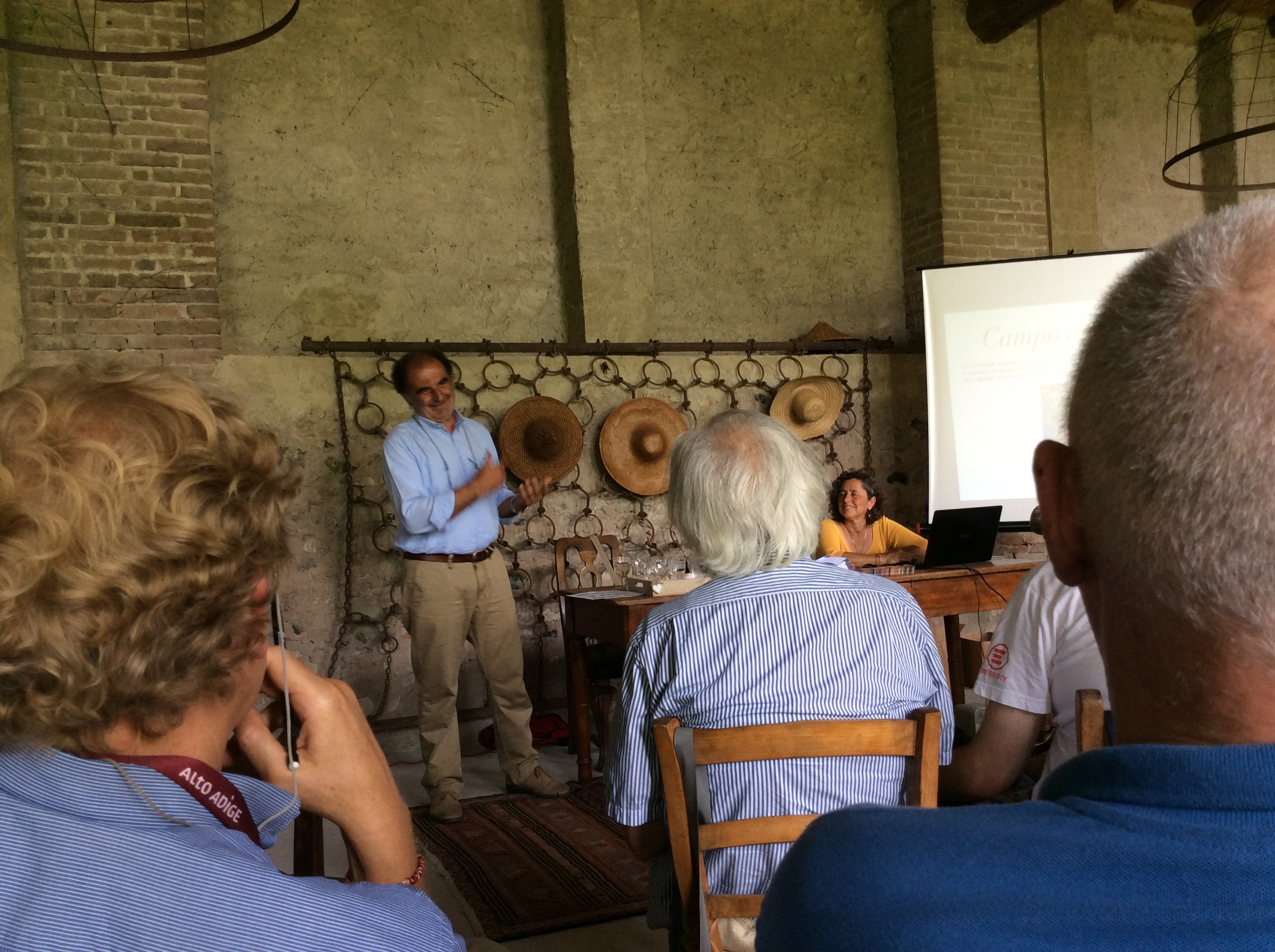 Il primo a parlare è Alessandro Fontana di Lungacque, l’azienda annessa al bellissimo locale che ospita l’incontro. In questo caso il tema è la permacultura, di cui qui non solo si applica il metodo, ma si tengono anche regolarmente corsi di formazione (coordinati dalla dottoressa Anna Satta, esperta di agricoltura sinergica), che richiamano contadini e appassionati da tutta Italia.